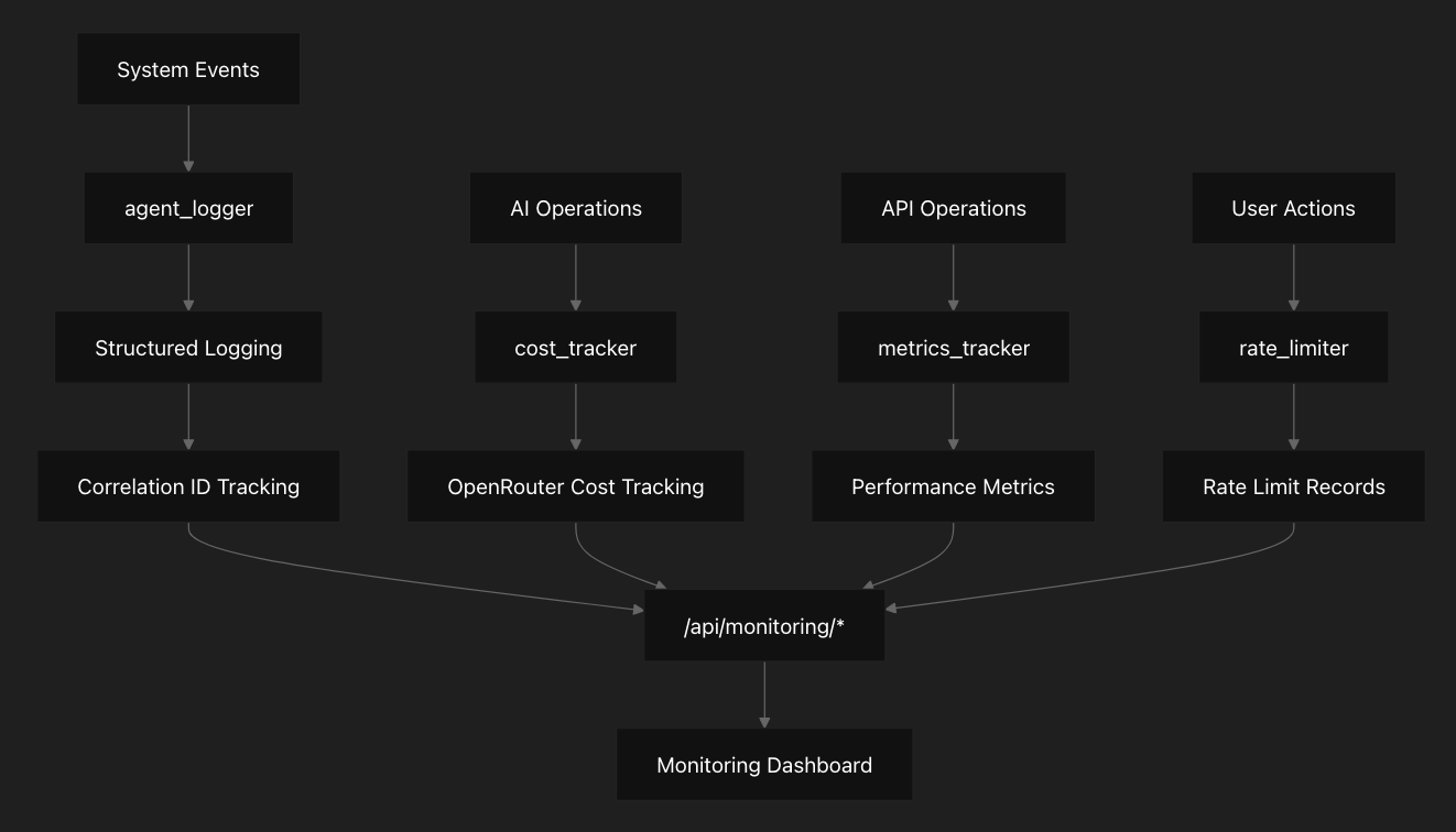 - Monitoring: OpenTelemetry (logs, metrics & traces) on Honeycomb, LangSmith for AI observability, Error tracking (Sentry).